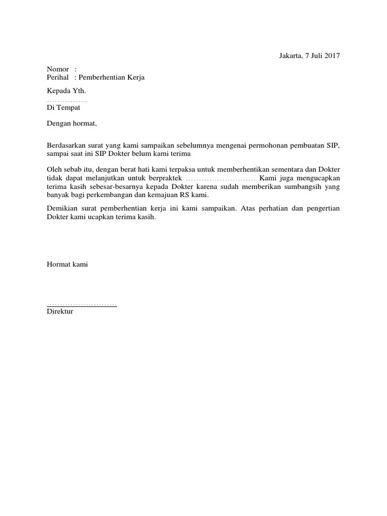 Contoh surat pecat 24 jam. Pemberhentian contoh surat penamatan perkhidmatan oleh .